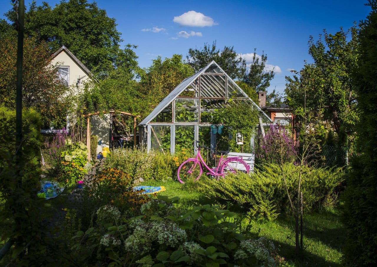 zdjęcie tablicy ogłoszeniowej na tle ogrodów działkowych